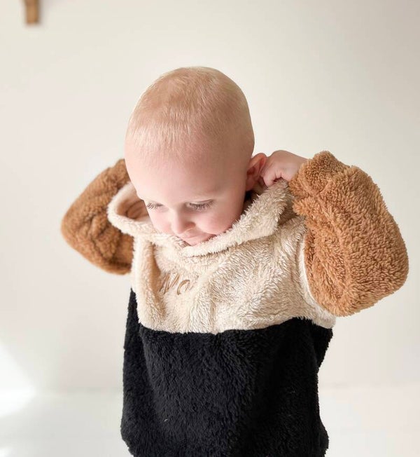 Super leuke teddy trui, met capuchon. valt goed op maat.
