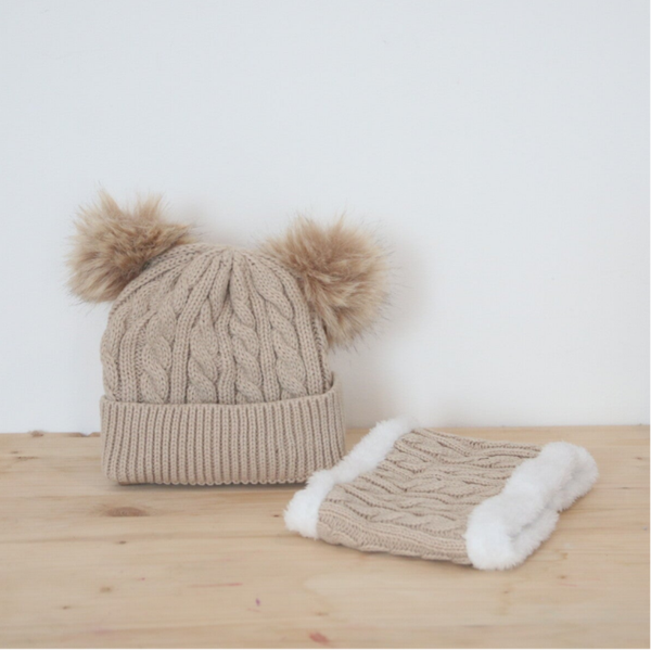 Dit setje wil je niet missen voor de koude winterse dagen, de muts is te schattig & de kolsjaal heerlijk gevoerd met fluffy stof aan de binnenkant.