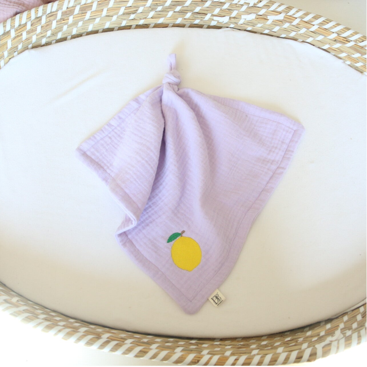 Een zacht hydrofiel speendoekje geborduurd met citroentje, knoop gemakkelijk je speentje eraan vast!