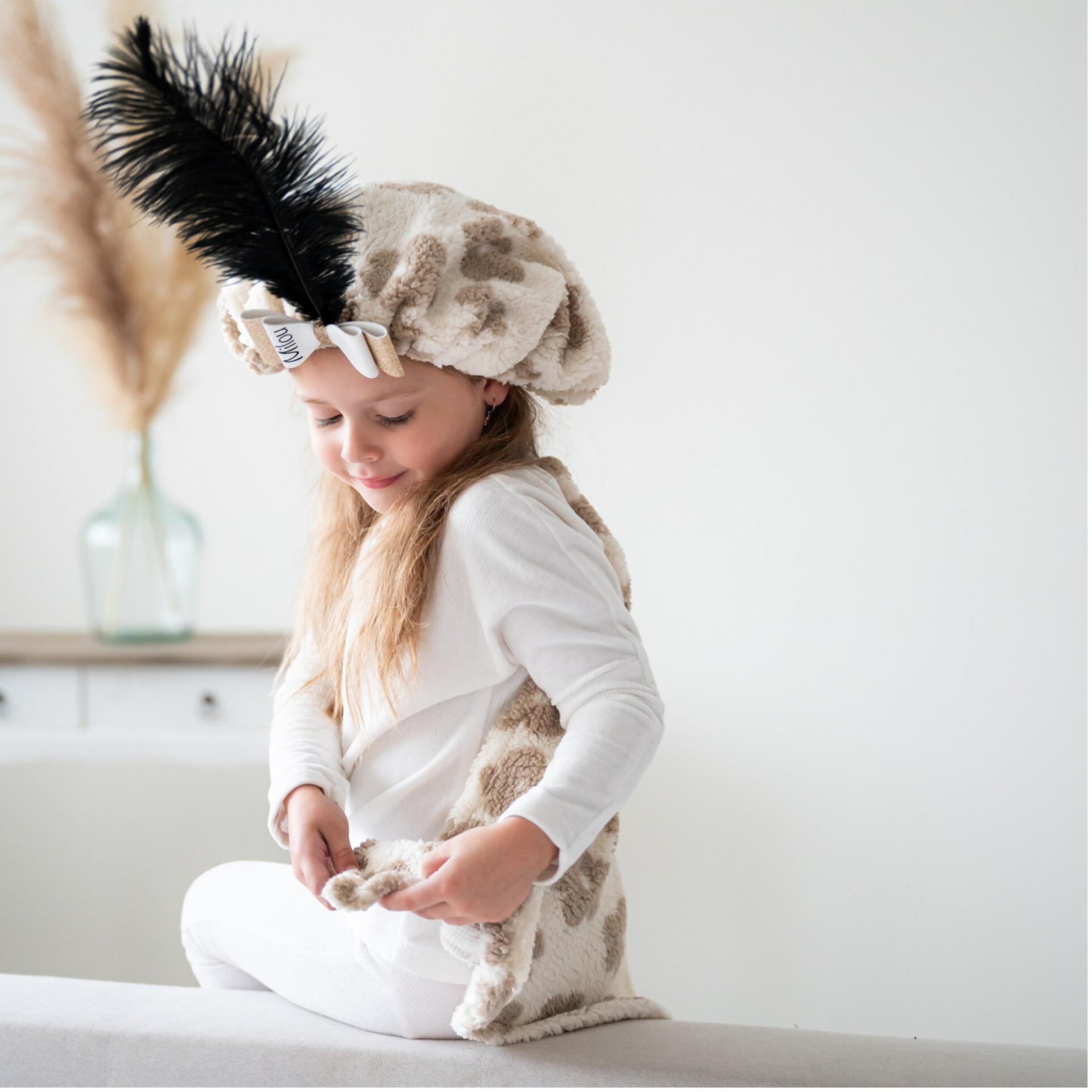 Kies uit een leuke naamstrik of naam button. Kies je eigen kleur veer en maak jouw set helemaal compleet met bijassende cape!