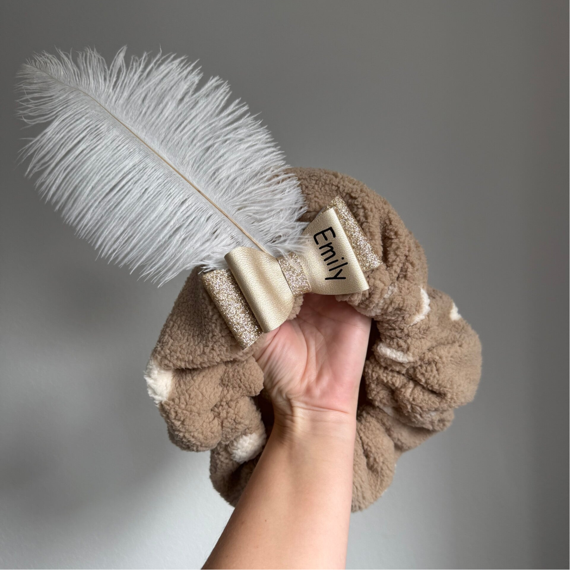 Kies uit een leuke naamstrik of naam button. Kies je eigen kleur veer en maak jouw set helemaal compleet met bijassende cape!