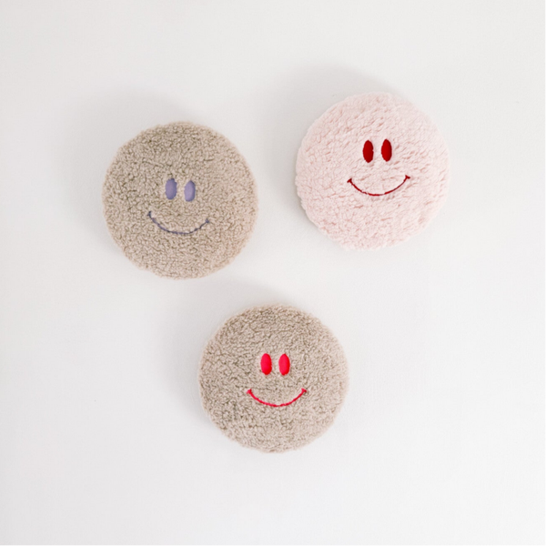 De smiley is gemaakt van zachte teddy stof. Ideaal voor babykamers, peuterkamers en als origineel kraam- of verjaardagscadeau.