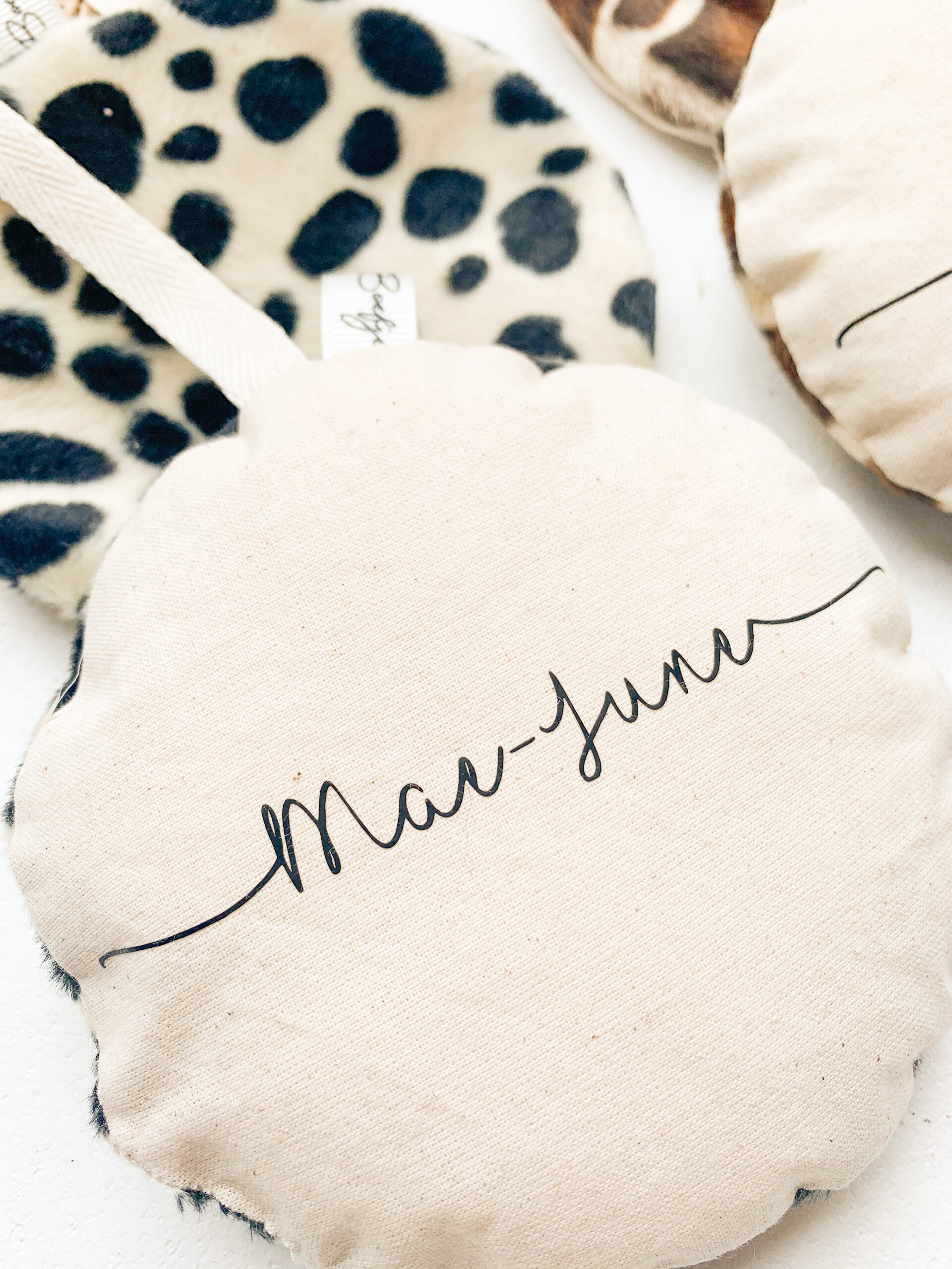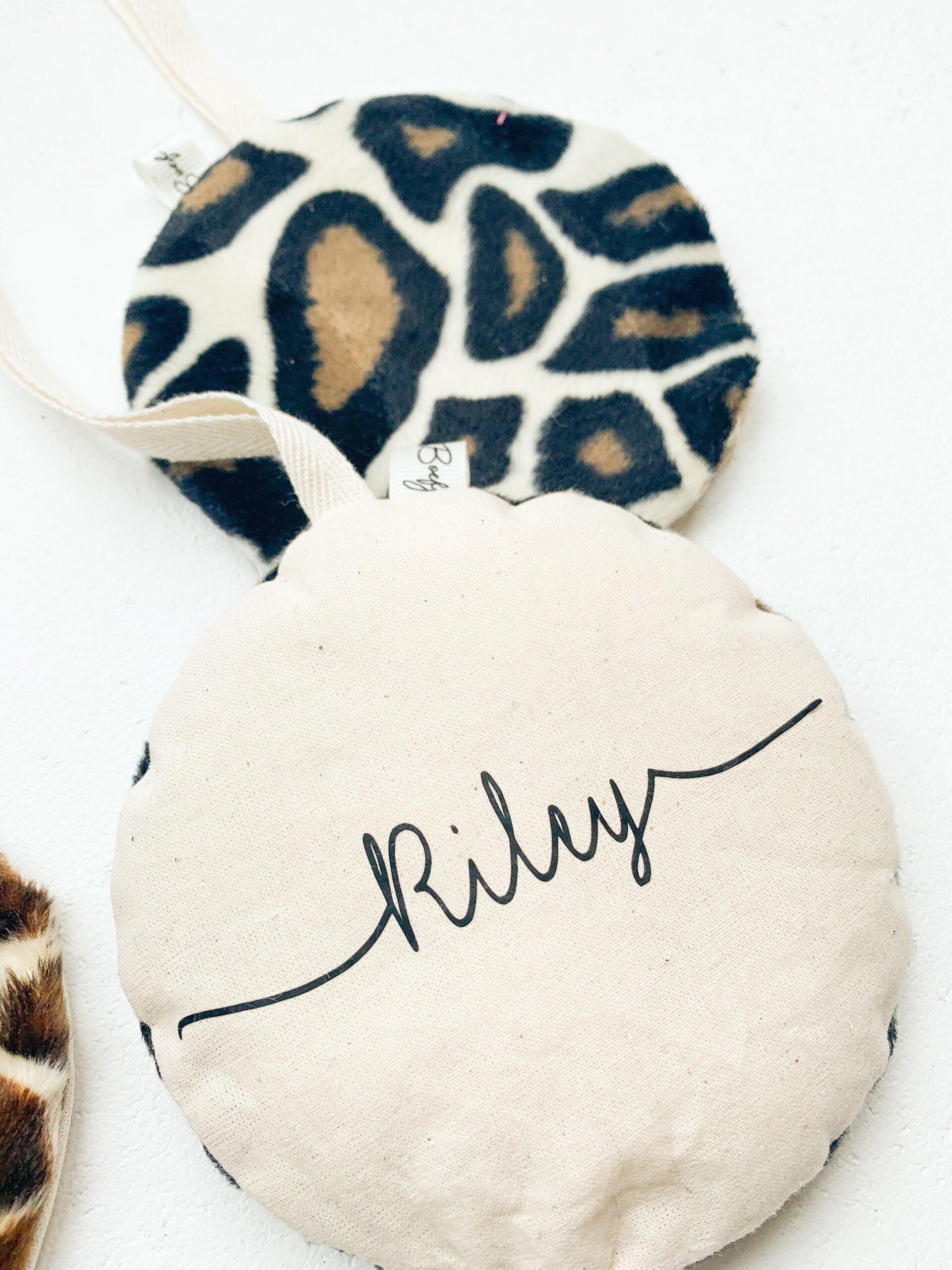 Onze speendoekjes worden allemaal met de hand gemaakt, Dit speendoekje is te personaliseren met naam & aan de achterkant zit een heel hip,zacht dierenprintje