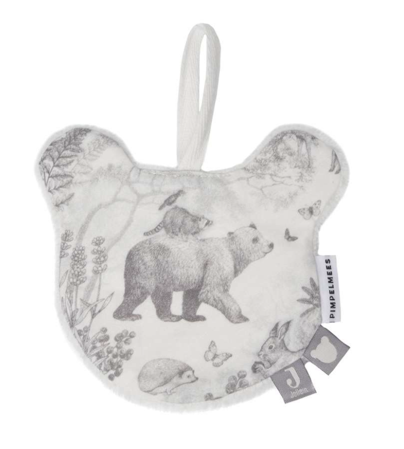 Is jouw baby ook gek op knuffelen en friemelen? Aan dit schattige speendoekje zitten lekker veel labeltjes waar aan gefriemeld kan worden. Het speendoekje heeft een vormpje van een beertje en het printje van het Pimpelmees x Jollein thema.
